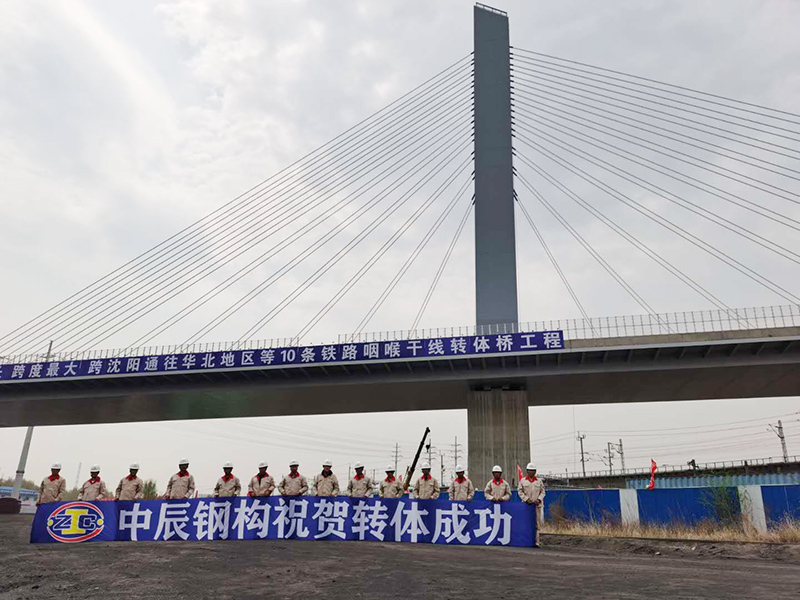 中鐵九局七公司是該項目的總承包單位,中辰鋼構作為鋼結構橋梁專業分包商,共同見證了沈陽市首座轉體斜拉橋實現轉體這一歷史時刻。橋梁轉體過程中,斜拉橋采用“轉體球鉸”進行驅動,以每分鐘接近1度的速率,逆時針轉動45度角,歷時80分鐘完成轉體。在斜拉橋轉體施工的核心區域,沒有轟鳴的機械聲,驅動大橋轉動的工人也并不多,這正是因為斜拉橋采用了全鋼結構,重量只有1.5萬噸,如果采用混凝土結構,重量要翻一倍以上。