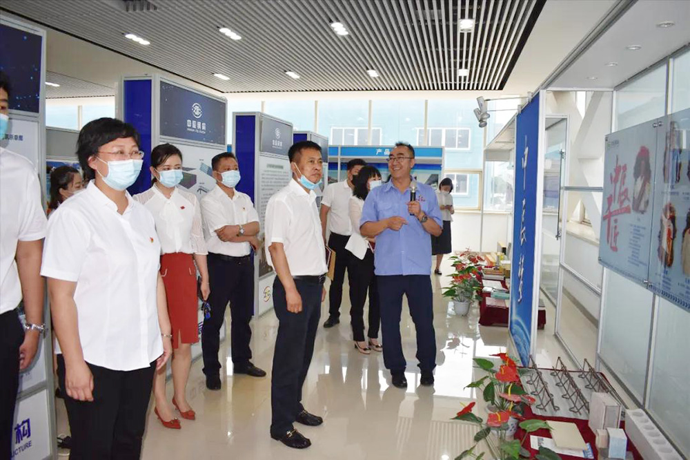 在黨建文化長廊和黨委會議室,杜書記一行參觀了企業(yè)黨建掠影、五大革命精神、企業(yè)內(nèi)刊《中辰之聲》及黨委會議室建設(shè)情況,并對中辰鋼構(gòu)黨建工作給予肯定。在講解中,劉健副書記分享到:中辰鋼構(gòu)由小到大,由弱到強的發(fā)展道路上,一直有黨組織支持和幫扶的身影。從創(chuàng)業(yè)之初的篳路藍縷,到如今發(fā)展轉(zhuǎn)型的攻堅克難,黨建的“軟實力”催生出了企業(yè)發(fā)展的“硬實力”,黨組織成為助推企業(yè)發(fā)展的“引擎”。“五大革命精神”的深刻內(nèi)涵,是我們企業(yè)經(jīng)營管理中不可或缺的精神,也是每一名中辰人必須具備的優(yōu)秀品質(zhì)。