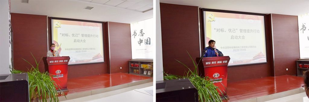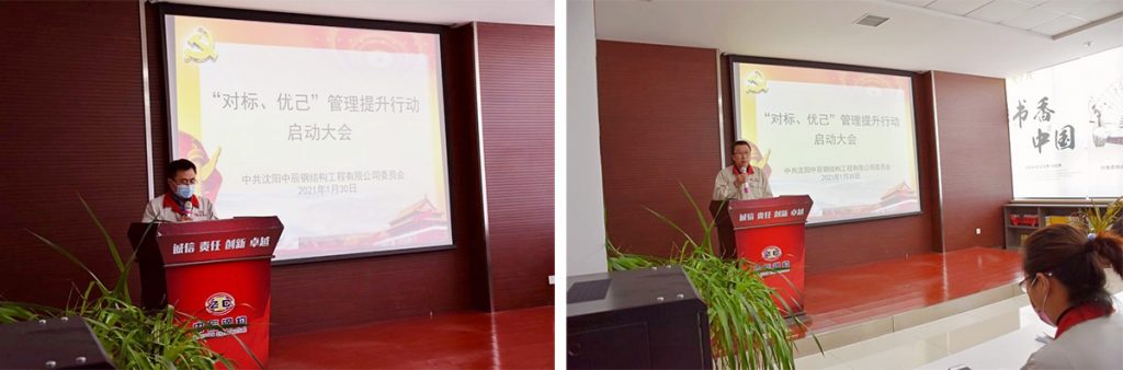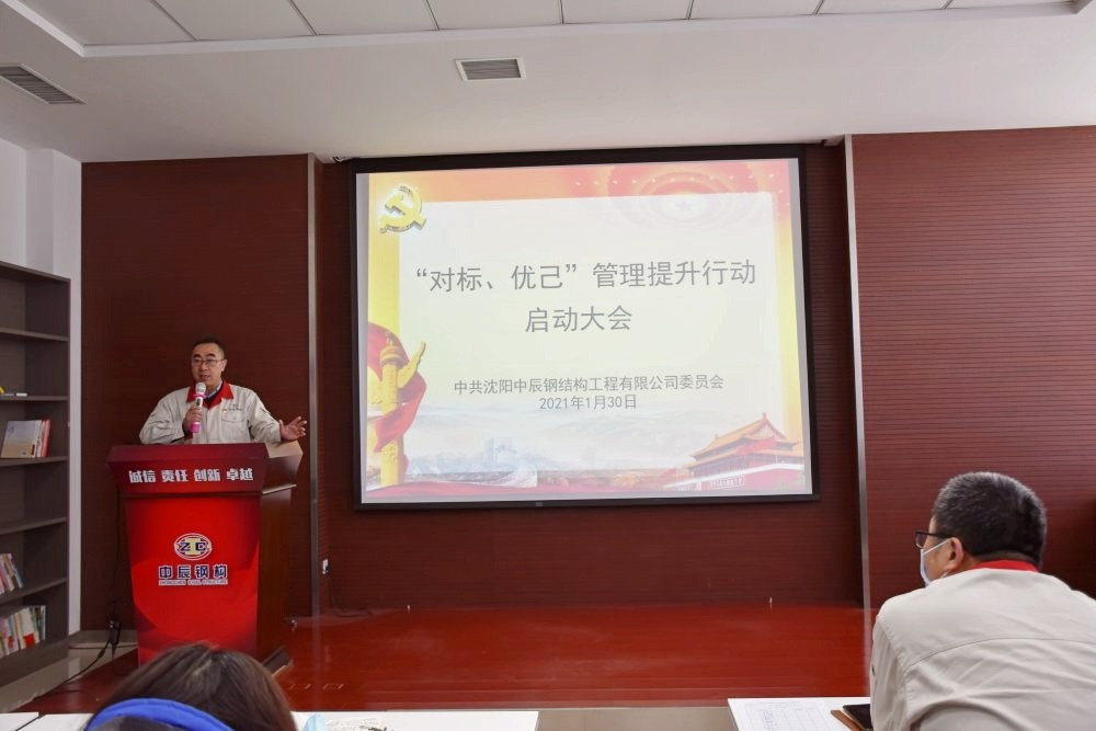 1月30日下午,中辰鋼構(gòu)“對標(biāo)、優(yōu)己”管理提升啟動大會在一樓職工書屋召開,來自機(jī)關(guān)各部室員工100余人參加大會,會議嚴(yán)格按照疫情防控要求執(zhí)行,全體參會人員保持社交距離并佩戴口罩。