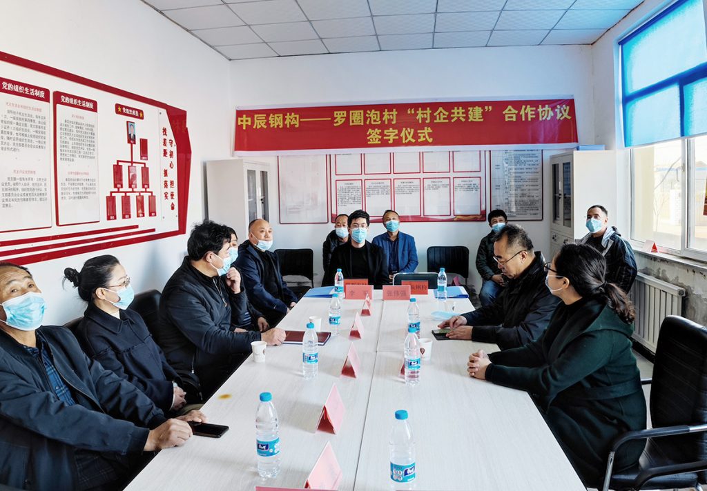 作為遼寧省首批非公黨建示范點企業,“黨建強企”戰略已成為引領中辰鋼構穩步前行的重要抓手,現在我們要將黨建工作延伸到沈陽的田間、地頭,向更廣闊天地發展,中辰鋼構將與羅圈泡村共同探索互惠互利“雙贏”模式,助力村級集體經濟發展壯大,為美麗鄉村建設貢獻力量。