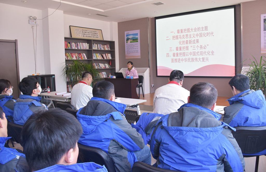 李正鴻老師在授課中指出,我們要講好中國故事,推進新的偉大工程。她強調,黨的二十大指明發展方向,明確宣示了我們黨在新征程上舉什么旗、走什么路、以什么樣的精神狀態、朝著什么樣的目標繼續前進的重大問題。這是我們企業在新時代、新征程上踔厲奮發,勇毅前行的行動綱領,我們要時刻遵循。